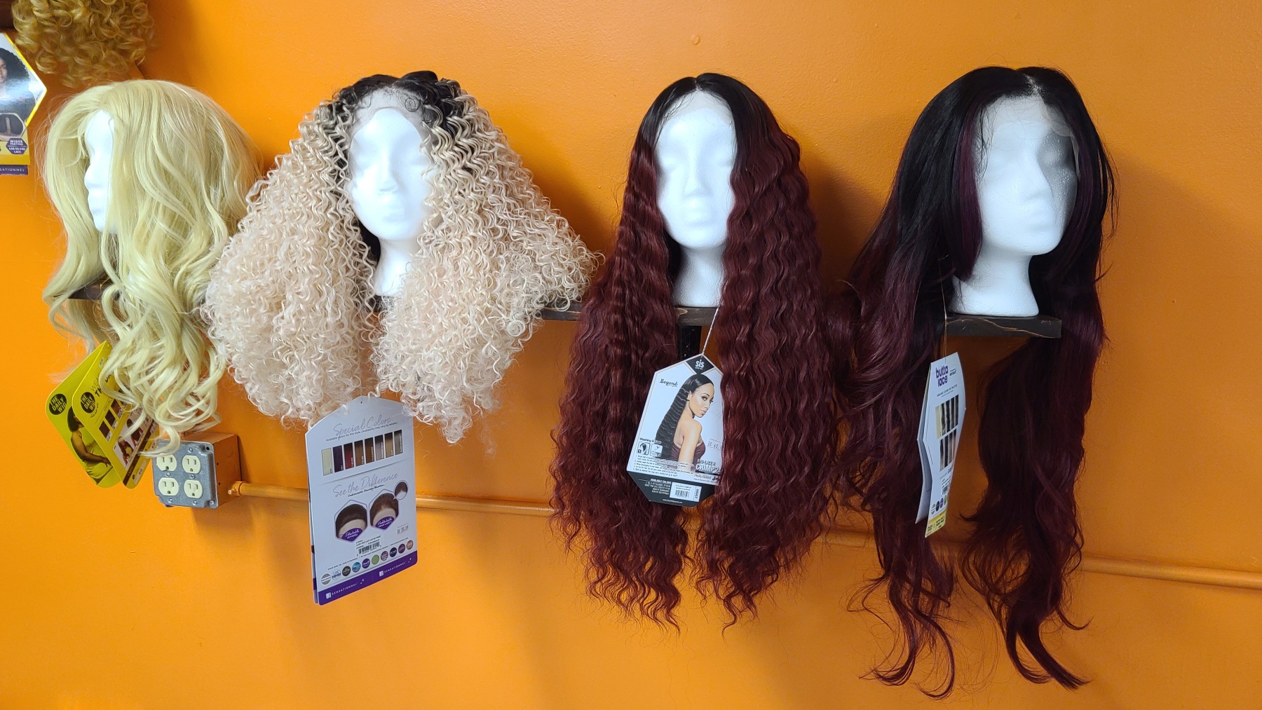 Currently lining her shelves are the traditional items you would find in a beauty supply store: wigs, weaves, hair conditioners, hair dye, brushes, and in her display case, beard kits for the fellas who wish to keep their facial hair soft and maintained.