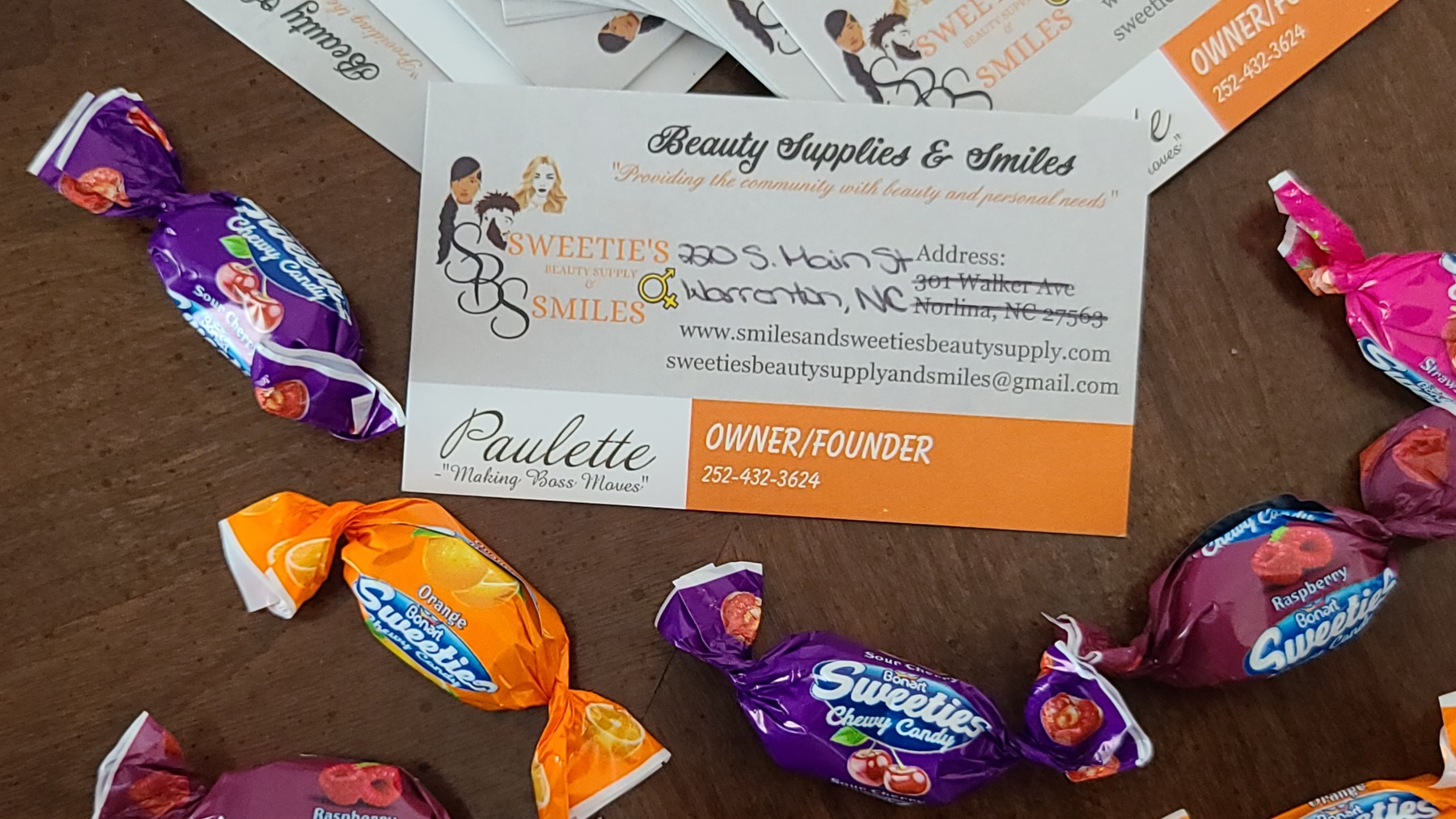 Sweetie’s Beauty Supply and Smiles is located on 220 S Main Street in Warrenton, NC. Store hours are Tuesday – Sunday, from 3:30-7:30pm. The store website is https://SmilesandSweetiesBeautySupply.com and for updates on new products and more, follow the store on Facebook and Instagram.