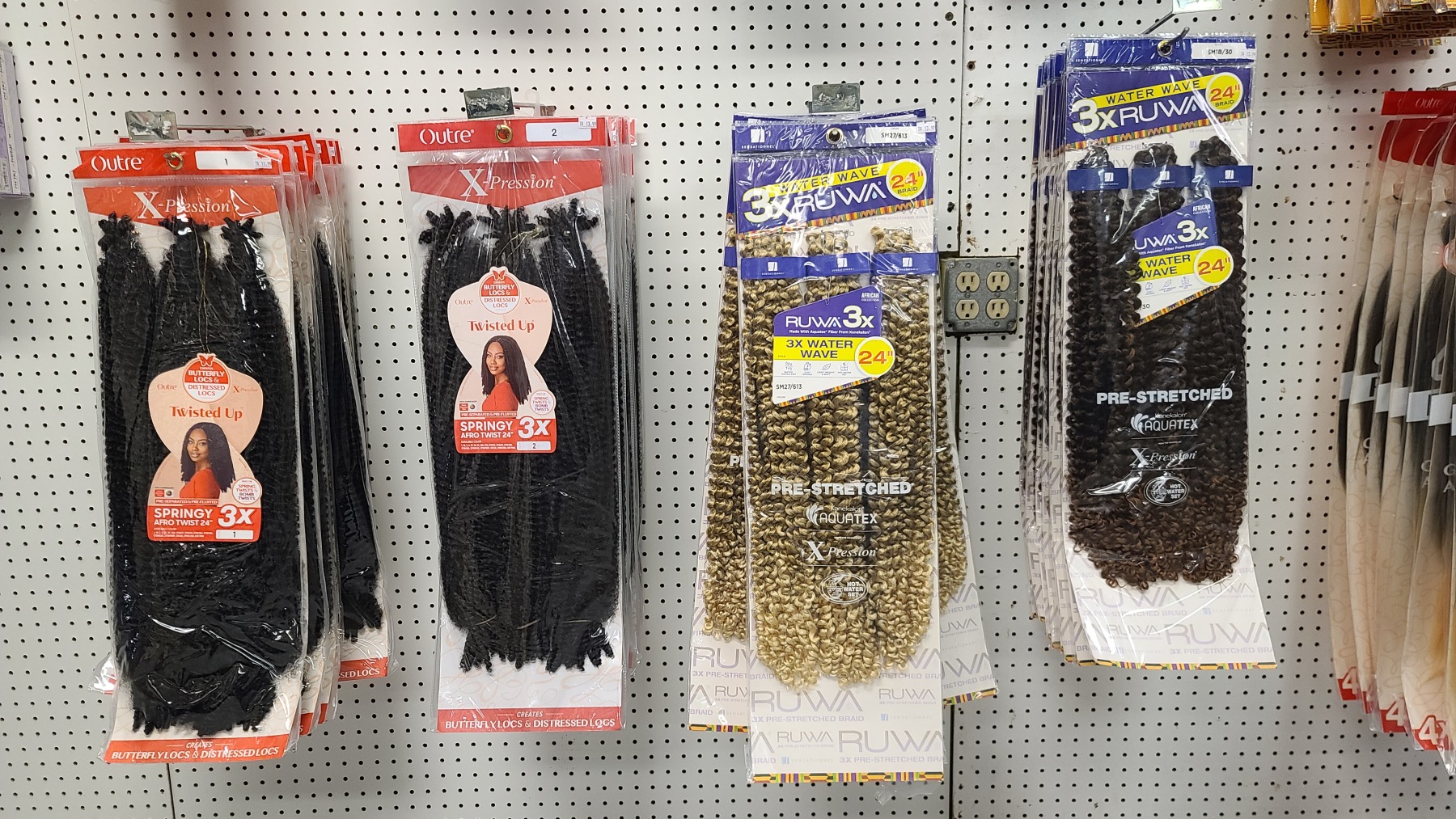 Currently lining her shelves are the traditional items you would find in a beauty supply store: wigs, weaves, hair conditioners, hair dye, brushes, and in her display case, beard kits for the fellas who wish to keep their facial hair soft and maintained.