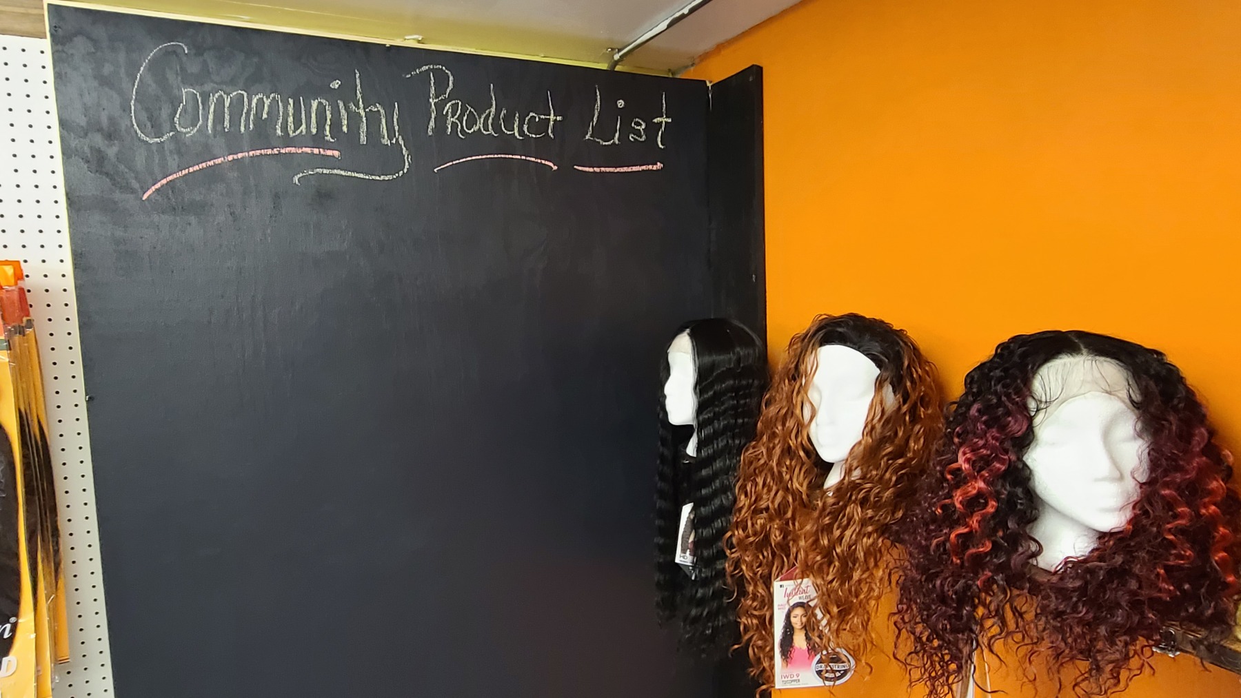 Currently lining her shelves are the traditional items you would find in a beauty supply store: wigs, weaves, hair conditioners, hair dye, brushes, and in her display case, beard kits for the fellas who wish to keep their facial hair soft and maintained.