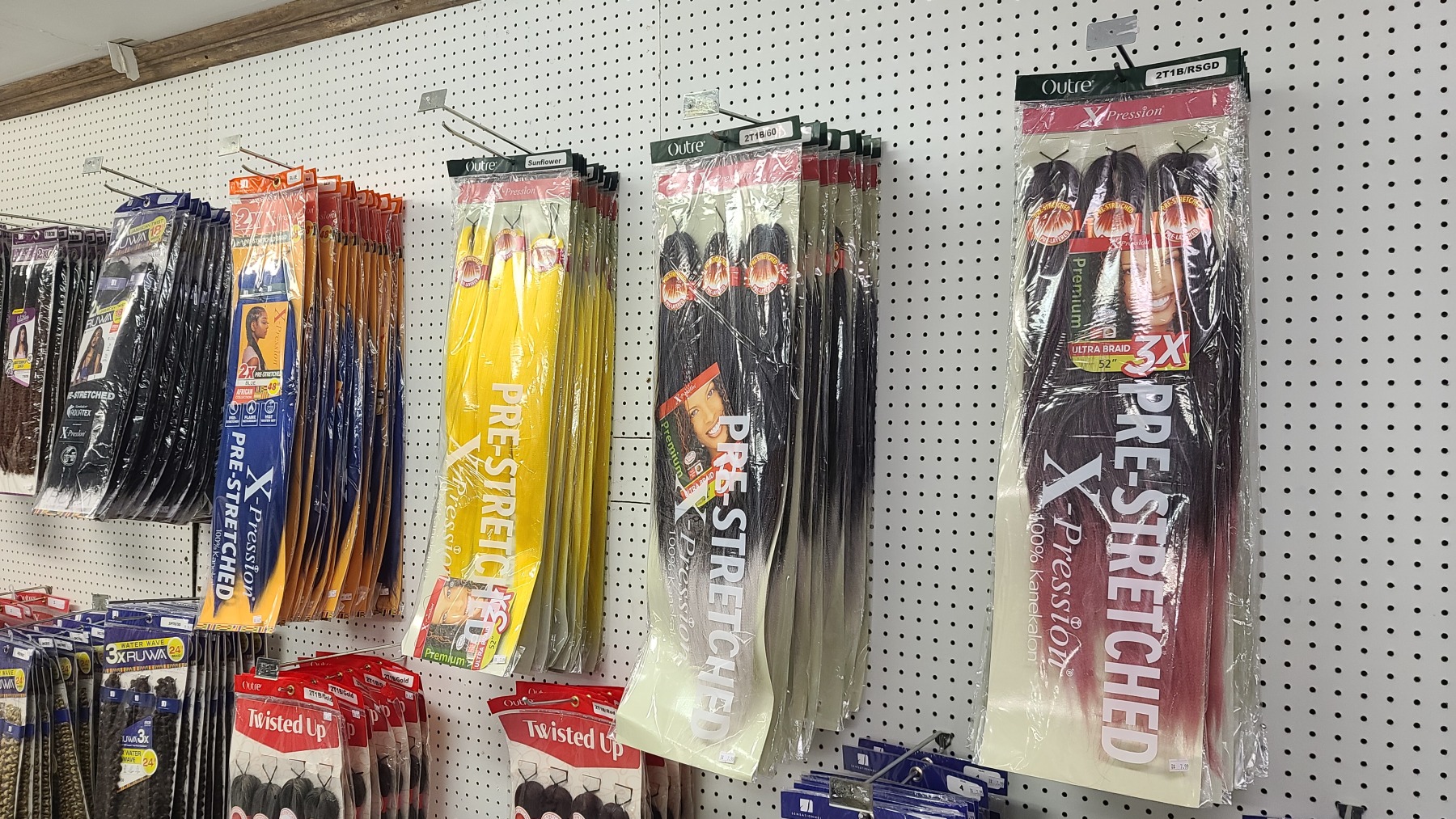 Currently lining her shelves are the traditional items you would find in a beauty supply store: wigs, weaves, hair conditioners, hair dye, brushes, and in her display case, beard kits for the fellas who wish to keep their facial hair soft and maintained.